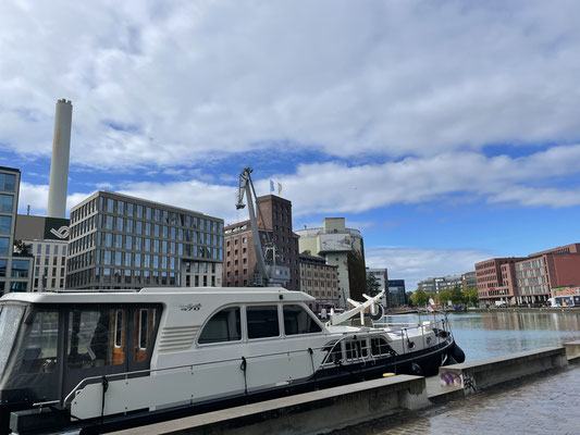 Der Verkehr bestand fast ausschliesslich aus Berufsverkehr. Dies hatte den Vorteil dass wir bei allen Schleusen praktisch keine Wartezeit hatten da wir meist einem Frachter folgten und wir mit diesem schnell abgefertigt wurden. Während der Reise haben wir nur in Brandenburg, Hannover und Münster in einem Hafen übernachtet. Auf der Strecke gibt es alle 15 bis 20 Km Spundwände wo über Nacht angelegt werden kann, wobei manchmal auch zusammen mit Frachtschiffen. Dies haben wir die restlichen Tage der Reise gemacht da das Wetter stimmte und wir weder Strom, Wasser noch Lebensmittel brauchten.